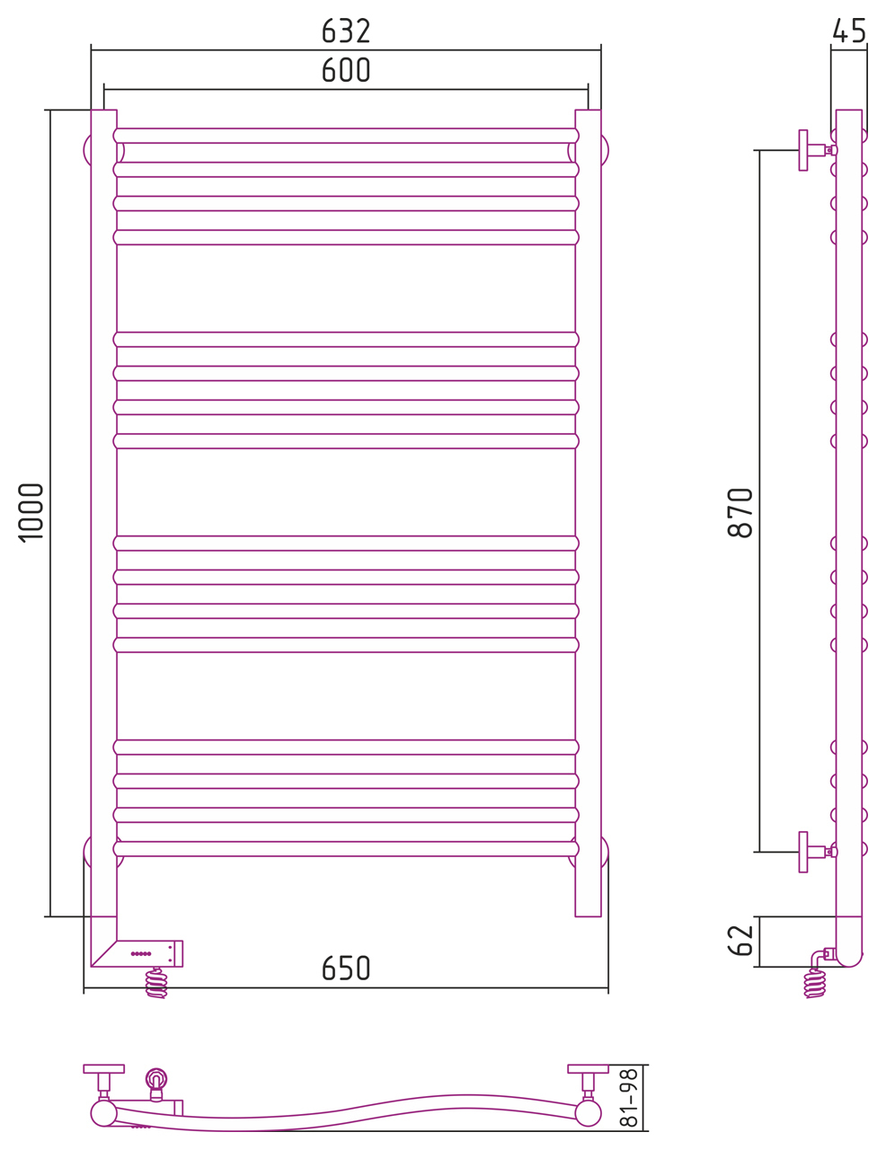 Внешние габариты (высота х ширина х глубина)(мм) : 1000x650x81-98